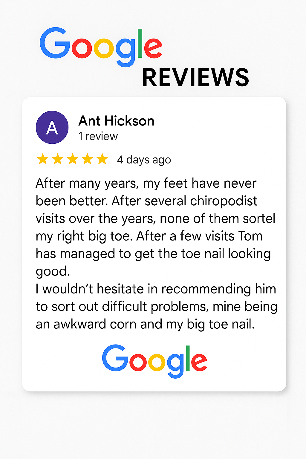 Tom made so much difference to my father in laws feet - you can hardly recognise them after just two visits!
